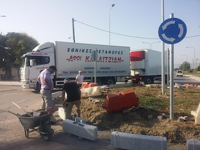 ότι τα μεγάλα οχήματα που κινούνταν εντός του κόμβου κατέστρεφαν την κρασπέδωση,