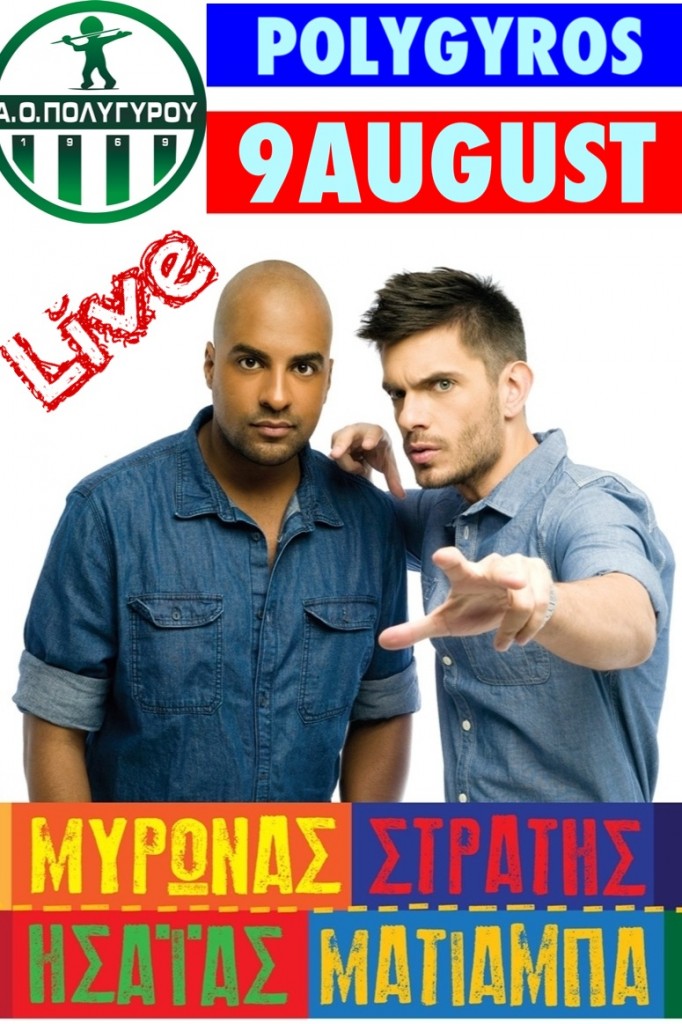 Στις 9 Αυγούστου στο Ανοικτό Θέατρο Πολυγύρου ο Μύρωνας Στρατής με τον Ησαΐα Ματιάμπα μετά από 6 μήνες sold out εμφανίσεων στην Αθήνα, είναι πανέτοιμοι για νέες… περιπέτειες!