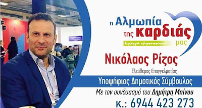 Home » Ο Νίκος Ρίζος υποψήφιος Δημοτικός Σύμβουλος με τον Δημήτρη Μπίνο
