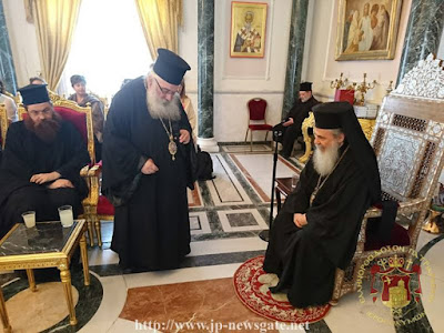 Ἐπί τούτοις λαβόντες τήν εὐλογίαν τοῦ Μακαριωτάτου ἐσυνέχισαν τό προσκύνημα αυτῶν εἰς τόν Πανίερον Ναόν τῆς Ἀναστάσεως.