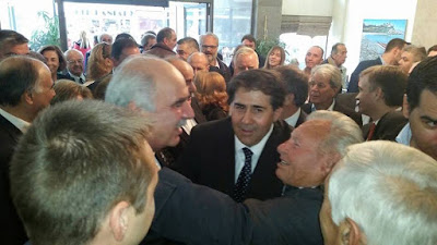 Οι φίλοι και τα στελέχη της Νέας Δημοκρατίας υποδέχτηκαν τον κ. Ευάγγελο Μεϊμαράκη στο -κατάμεστο από κόσμο, εντός κι εκτός- ξενοδοχείο Άλφα, όπου έγινε δέκτης της αγάπης των παρευρισκομένων και αφού τους χαιρετήθηκε με όλους, έκανε δήλωση στα ΜΜΕ και blogs (Δείτε το βίντεο).