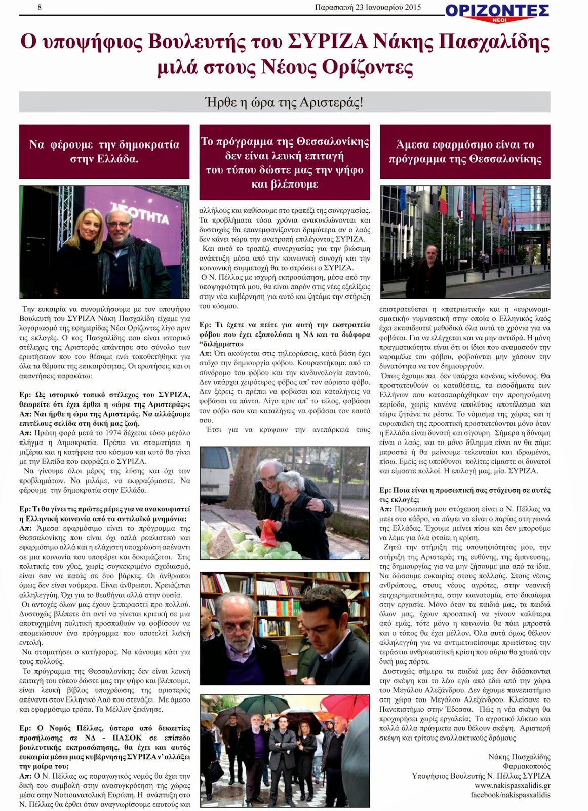 Πασχαλίδη είχαμε για λογαριασμό της εφημερίδας Νέοι Ορίζοντες λίγο πριν τις εκλογές.