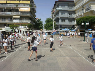 Τα παιδιά σε ομάδες των 3 ατόμων, έπαιξαν βόλλευ και φωτογραφήθηκαν με τον Γιάννη Παντακίδη βολεϊμπολίστα του ΠΑΟΚ , που υπέγραψε στις μπλούζες και στα διπλώματα συμμετοχής.