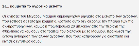Μαξίμου διέσπασαν το αγροτικό μέτωπο