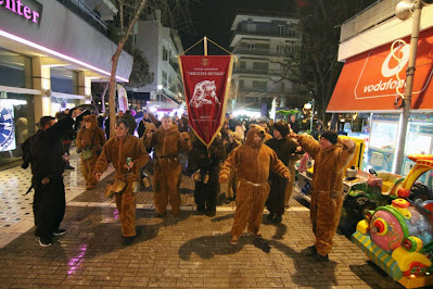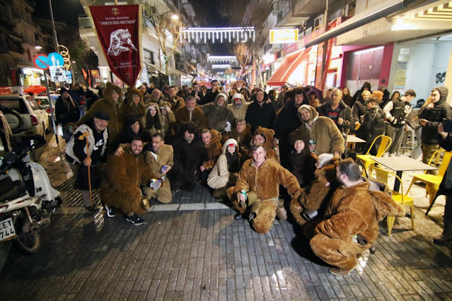 Οι συμμετέχοντες, ντυμένοι με τις χαρακτηριστικές στολές των Αρκούδων-Μέτσκες και κουβαλώντας κουδούνια, χόρευαν ασταμάτητα, σκορπώντας αποκριάτικο κέφι.