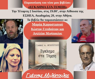 Το νέο βιβλίο του επικεφαλής της παράταξης «ΑΛΛΑΓΗ ΣΤΗΝ ΠΕΡΙΦΕΡΕΙΑ Κ. ΜΑΚΕΔΟΝΙΑΣ» και Καθηγητή ΑΠΘ, Γιάννη Μυλόπουλου, με τίτλο «ΕΓΚΛΗΜΑ ΣΤΑ ΤΕΜΠΗ», από τις Εκδόσεις Παπαζήση, θα παρουσιαστεί αύριο, Τετάρτη 2 Ιουλίου, στις 19:00, στην αίθουσα της ΕΣΗΕΑ (Ακαδημίας 20, Αθήνα).