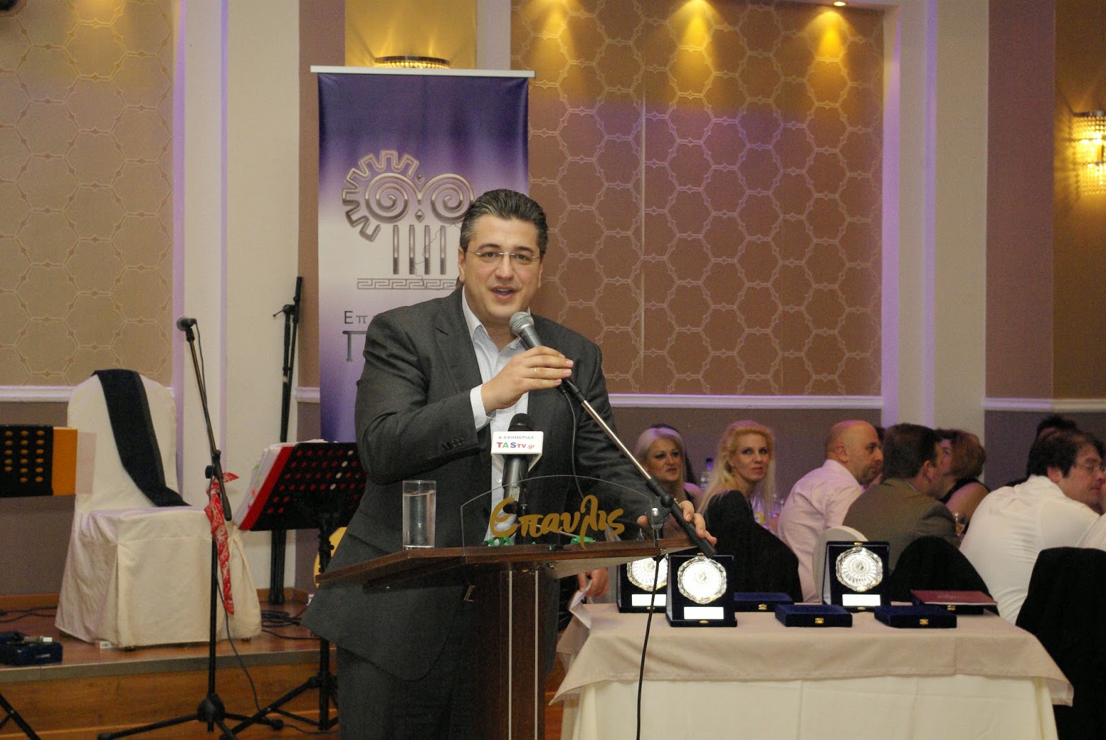 | Πρώτη εμφάνιση για τον Υπουργό Αγροτικής Ανάπτυξης Γιώργο Καρασμάνη. Μαζί με τον Πρόεδρο του επιμελητηρίου Ιορδάνη Τσώτσο |