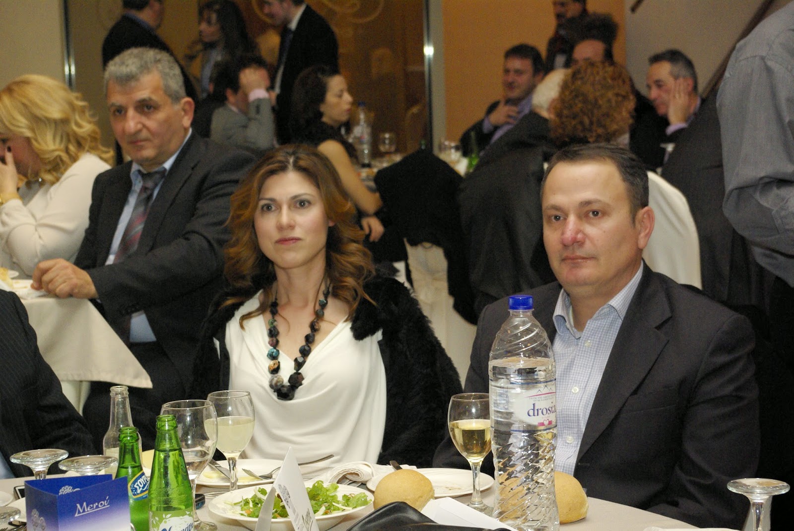 | Η έκπληξη του ψηφοδελτίου της Νέας Δημοκρατίας Θάλια Τσαλκιτζή με τον άνδρα της άκουσε με προσοχή την ομιλία του προέδρου του επιμελητηρίου Ιορδάνη Τσώτσου |