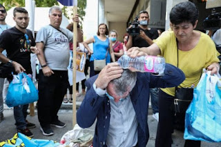 Στην προσπάθεια των διαδηλωτών να «σπάσουν» τη γραμμή των ΜΑΤ που είχε στηθεί έξω από το υπουργείο, ο πρόεδρος της ΠΟΕΔΗΝ, Μιχάλης Γιαννακός, απωθήθηκε με αποτέλεσμα να πέσει στο έδαφος.
