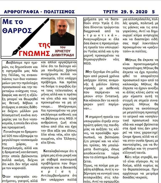 ημερών, τις δημοσίευσε και η εφημερίδα μας Νέα της Πέλλας, τις ανακοινώσεις των