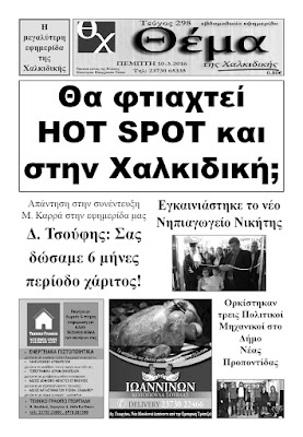 Πριν αλέκτωρ να λαλήσει τρεις φορές επιβεβαιώθηκε το πρωτοσέλιδο της εφημερίδας Θέμα της Χαλκιδικής!