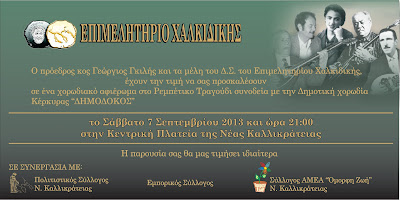 Καλλικράτειας, διοργανώνουν το βράδυ του Σαββάτου της 7ης  Σεπτεμβρίου 2013 και ώρα 21.00, στην κεντρική