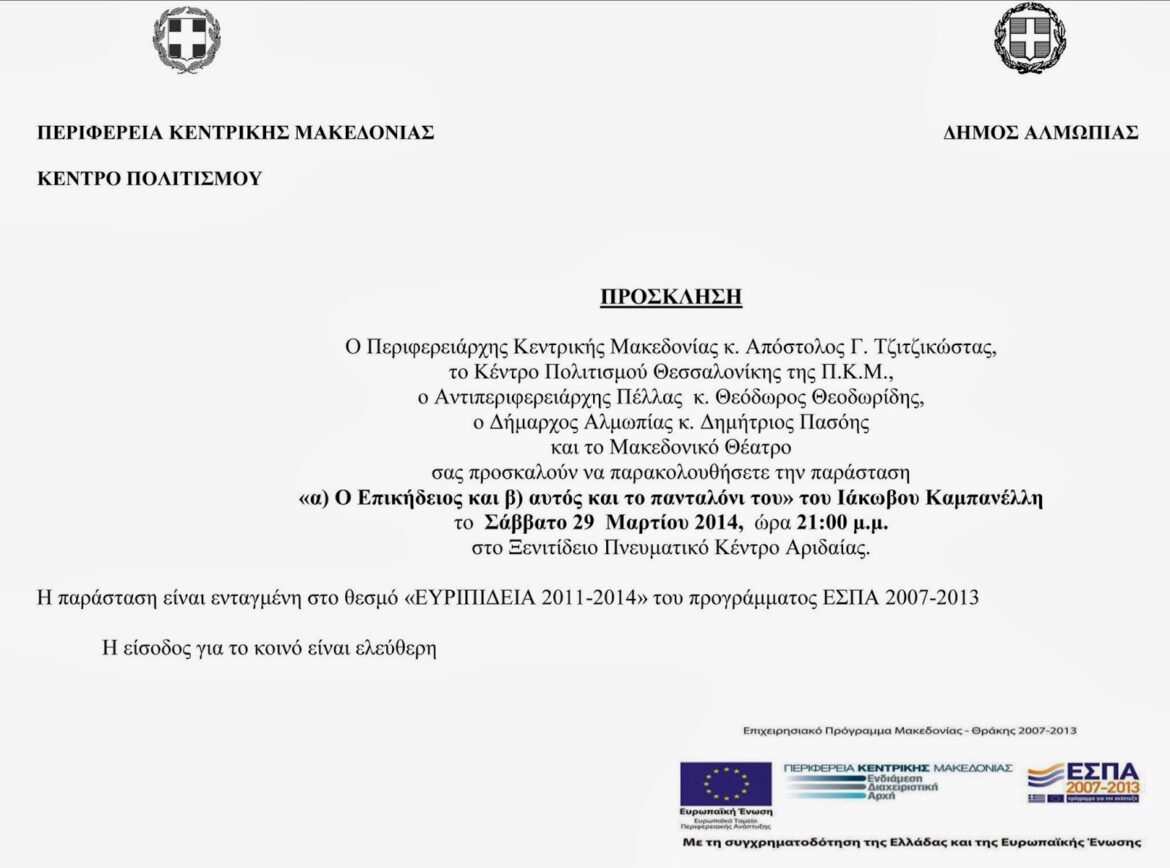 ΠΡΟΣΚΛΗΣΗ ΓΙΑ ΞΕΝΙΤΙΔΕΙΟ