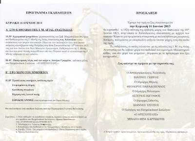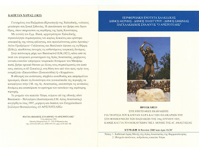 ΠΡΟΣΚΛΗΣΗ – ΠΡΟΓΡΑΜΜΑ ΓΙΑ ΕΠΕΤΕΙΑΚΕΣ ΕΚΔΗΛΩΣΕΙΣ ΓΙΑ ΤΗ ΘΥΣΙΑ ΤΟΥ ΚΑΠΕΤΑΝ ΧΑΨΑ