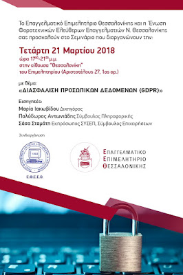 Το σεμινάριο έχει ως τίτλο “Διασφάλιση Προσωπικών Δεδομένων – GDPR” και