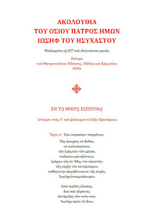 Κατόπιν παρακλήσεως του οσιολογιωτάτου Καθηγουμένου της Ιεράς Μονής Φιλοθέου Αγίου Όρους ο Σεβ. Μητροπολίτης Εδέσσης, Πέλλης και Αλμωπίας κ. Ιωήλ συνέθεσε την ιερά ακολουθία του οσίου και θεοφόρου πατρός ημών Ιωσήφ του Ησυχαστού.