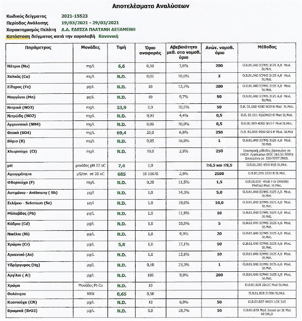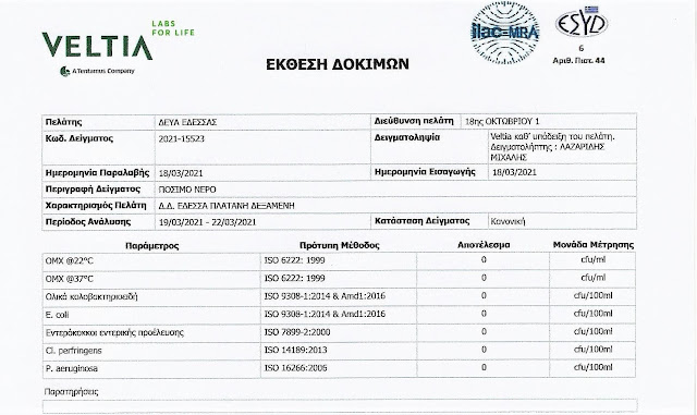 Έδεσσα Σε φυσιολογικά όρια το νερό της Πλατάνης!!! by Χρήστος Δημητριάδης 5 έτη ago written by Χρήστος Δημητριάδης 5 έτη ago 0 comments 0 minutes read 0FacebookTwitterPinterestEmail 37 Σύμφωνα με τον Πρόεδρο της Τοπικής Κοινότητας Πλατάνης, ύστερα από έλεγχο του νερού του χωριού Πλατάνη, διαπιστώθηκε ότι η ανάλυση νερού του πρώτου εξαμήνου του 2021 είχε επιθυμητά αποτελέσματα. Ο Χρήστος Σπρίτας δημοσίευσε τα αποτελέσματα: 0 FacebookTwitterPinterestEmail Χρήστος Δημητριάδης previous post NextGenerationEU: Η Επιτροπή ετοιμάζεται να συγκεντρώσει έως και 800 δισ. ευρώ για τη χρηματοδότηση της ανάκαμψης next post Κ. Ιγνατιάδου: Να αποζημιωθούν στο 100% της ζημιάς You may also like 2ο ΓΕΛ ΕΔΕΣΣΑΣ:«Δωρεά εικόνων από την Ιερά Μητρόπολη Εδέσσης, Πέλλης και Αλμωπίας» 4 ημέρες ago Λευκή Συμμαχία στο Βέρμιο: Το Σχέδιο των 30 Εκατομμυρίων που Ενώνει Σέλι,... 6 ημέρες ago ΕΚΔΗΛΩΣΗ ΠΕΑΕΑ-ΔΣΕ ΠΕΛΛΑΣ στο ΜΑΡΤΥΡΙΚΟ ΕΛΕΥΘΕΡΟΧΩΡΙ του ΠΑIKOY 2 εβδομάδες ago Ο μισός Σιδηροδρομικός σχεδιασμός της Πέλλας: Πολιτική Μυωπία, Μισές Υποσχέσεις και το... 2 εβδομάδες ago : Συνεργασία Ευθύνης: Πίεση για λύσεις σε έργα, ανακύκλωση και καθημερινά προβλήματα 2 εβδομάδες ago Το «υγρό στοιχείο» του Αθανάσιου Χρήστου πλημμυρίζει το Παρθεναγωγείο Έδεσσας 2 εβδομάδες ago Leave a CommentΓια να σχολιάσετε πρέπει να συνδεθείτε.