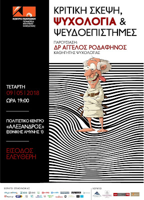 Δρ Άγγελο Ροδαφηνό με τίτλο : «Κριτική Σκέψη, Ψυχολογία & Ψευδοεπιστήμες».
