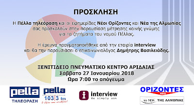 κοινής γνώμης για τα ζητήματα του νομού Πέλλας. Την εκδήλωση διοργανώνουν η