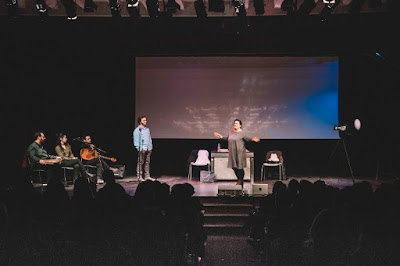 οθόνη, όπου προβλήθηκαν στιγμιότυπα –ντοκουμέντα , ενώ η κάμερα σε