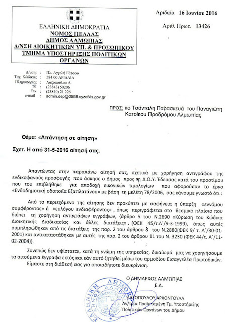 Δημοτικής αρχής Αλμωπίας αλλά και προσωπικά εναντίον του