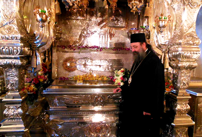 ο οποίος έχει ταφεί στο εσωτερικό του Ναού. Εκεί είχαν συνομιλία με τον