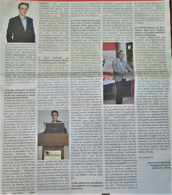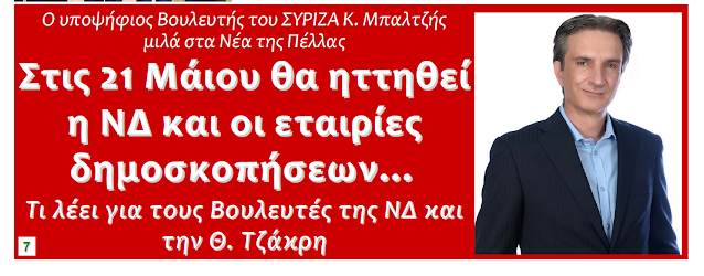 Ο υποψήφιος Βουλευτής του ΣΥΡΙΖΑ Κ. Μπαλτζής μιλά στα Νέα της Πέλλας