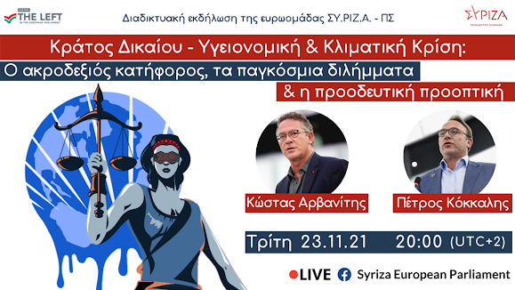 Στις 23 Νοεμβρίου η εκδήλωση της Ευρωομάδας του ΣΥΡΙΖΑ-ΠΣ: Κράτος Δικαίου – Υγειονομική και Κλιματική Κρίση