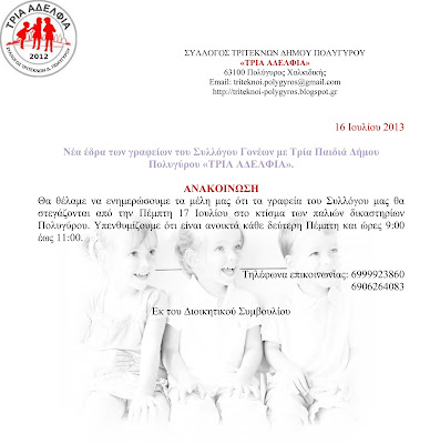 Χαλκιδική Σύλλογος Τριτέκνων Δ.Πολυγύρου Τρία Αδέλφια by Χρήστος Δημητριάδης 13 έτη ago written by Χρήστος Δημητριάδης 13 έτη ago 0 comments 0 minutes read 0FacebookTwitterPinterestEmail 42 0 FacebookTwitterPinterestEmail Χρήστος Δημητριάδης previous post Συνάντηση Δημάρχου Σκύδρας με τον Αστυνομικό Διευθυντή Πέλλας next post Τετάρτη, 17 Ιουλίου 2013 Το Επιμελητήριο Χαλκιδικής ενημερώνει τα μέλη του You may also like Η Περιφέρεια Κεντρικής Μακεδονίας στη σημαντικότερη B2B διοργάνωση τουρισμού της Σουηδίας 4 μήνες ago ΤΥΠΟΕΚΔΟΤΙΚΗ Ο.Ε. Χ. ΔΗΜΗΤΡΙΑΔΗΣ ΚΑΙ ΣΙΑ (Εφημερίδες «Η ΧΑΛΚΙΔΙΚΗ», «Θέμα της Χαλκιδικής»,... 6 μήνες ago Αυξημένοι Έλεγχοι για Κράνη στην Πέλλα 7 μήνες ago Εντατικοί Έλεγχοι της Αστυνομίας στην Κεντρική Μακεδονία 7 μήνες ago Εντατικοί Έλεγχοι για τη Χρήση Κράνους στην Κεντρική Μακεδονία 7 μήνες ago Αυξημένοι οι τζίροι στα καταλύματα και την εστίαση στην Χαλκιδική 4 έτη ago Leave a CommentΓια να σχολιάσετε πρέπει να συνδεθείτε.