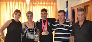 τιμητικής πλακέτας από τη Δήμαρχο στον Πρωταθλητή με την παρουσία Αντιδημάρχων