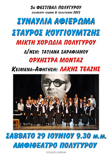 Χορωδία Πολυγύρου, Ορχήστρα Μοντάζ, αφηγητής ο στιχουργός Λάκης