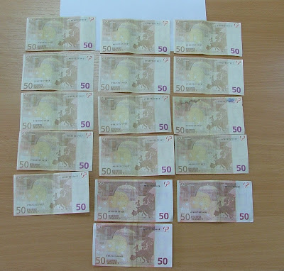 16 πλαστά χαρτονομίσματα των 50 ευρώ.