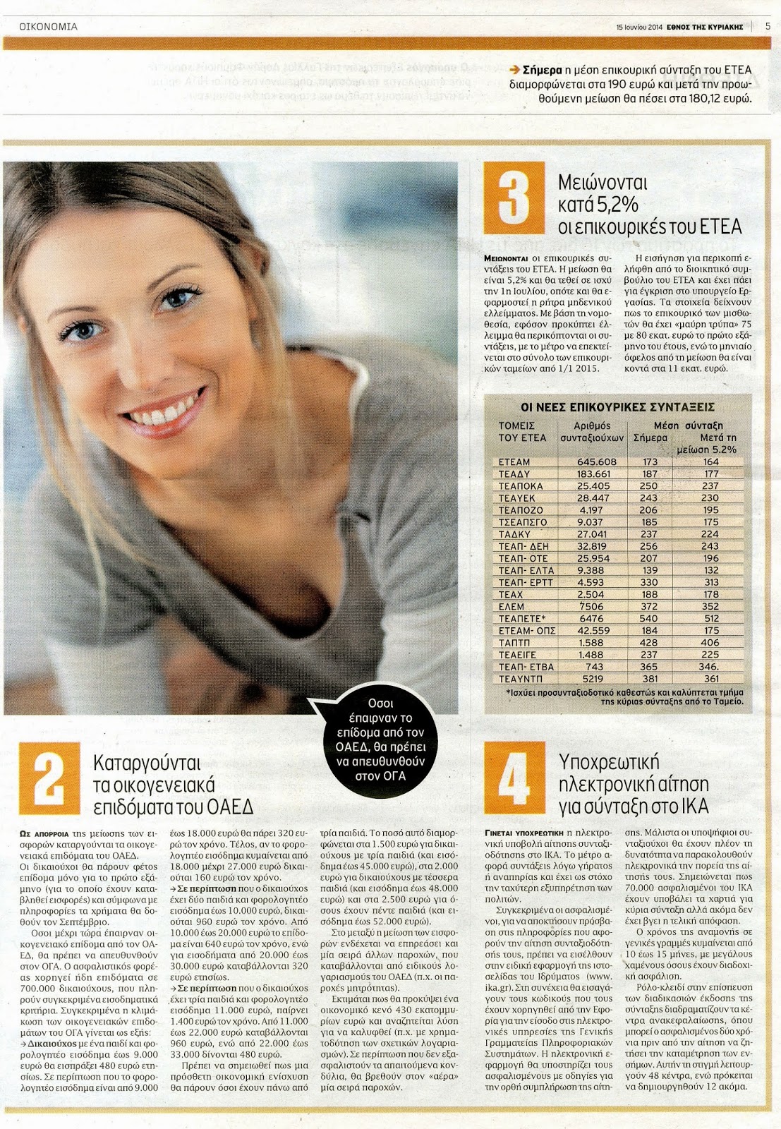 μήνα κατά μέσο όρο, λόγω της μείωσης των επικουρικών συντάξεων στο ΕΤΕΑ.