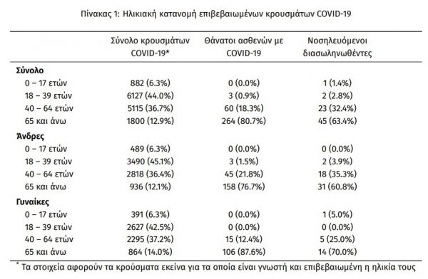 Η διάμεση ηλικία των θανόντων συμπολιτών μας ήταν τα 78 έτη και το 96.6% είχε κάποιο υποκείμενο νόσημα ή/και ηλικία 70 ετών και άνω.