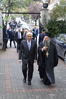 Ο Πρόεδρος της Δημοκρατίας εξέφρασε στον Σεβασμιώτατο τις θερμές ευχαριστίες του για την θερμή υποδοχή και τους φιλόφρονες λόγους του, ενώ ευχαρίστησε ιδιαίτερα και τον χορό των κληρικών της Ι. Μητροπόλεως για την ψαλμωδία ύμνων κατά την έναρξη και το πέρας της υποδοχής σύμφωνα με το βυζαντινό τυπικό υποδοχής των ανωτάτων αρχόντων.