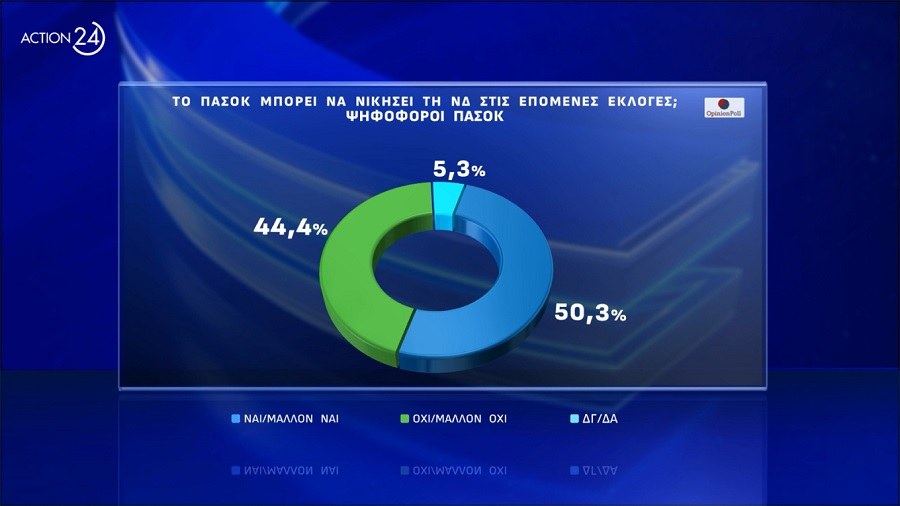 Σύμφωνα με τα ευρήματα της δημοσκόπησης ένας στους δύο ψηφοφόρους του ΠΑΣΟΚ πιστεύουν ότι το κόμμα μπορεί να κερδίσει τις επόμενες εκλογές.