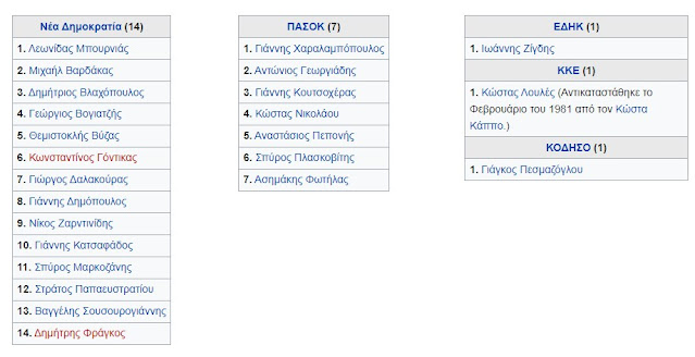 Οι διορισμένοι Ευρωβουλευτές ήταν οι ακόλουθοι: