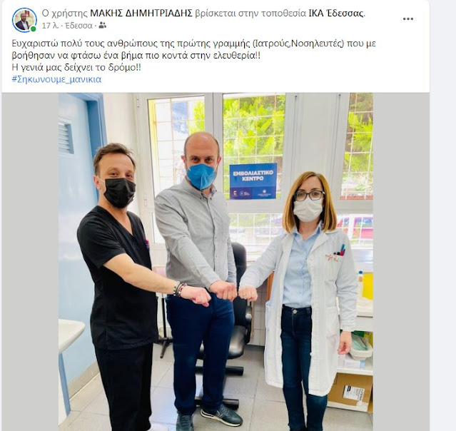 Ο Πρόεδρος της ΔΗΜΤΟ Σκύδρας και μέλος της Πολιτικής Επιτροπής της Νέας Δημοκρατίας, Μάκης Δημητριάδης έκανε το πρώτο βήμα προς την ελευθερία καθώς εμβολιάστηκε. Δείτε τι δήλωσε: