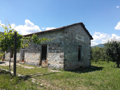 σωζόμενο κτίριο του σταθμού Μεγαπλατανου, μέσα στα χωράφια της περιοχής, το όποιο