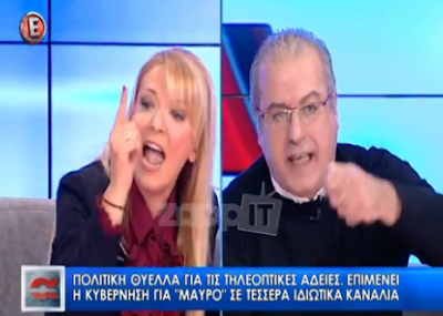 Άγριος καβγάς ξέσπασε στον αέρα της εκπομπής “Αποκαλυπτικά” μεταξύ της δημοσιογράφου Τάνιας Ιακωβίδου και των βουλευτών του ΣΥΡΙΖΑ Γιάννη Σηφάκη και Ελένης Αυλωνίτου. Θέμα συζήτησης ήταν, όπως είναι πολύ φυσικό τις τελευταίες ημέρες σε όλες τις εκπομπές, η ψήφιση της τροπολογίας για τις τηλεοπτικές άδειες.