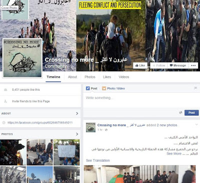 Μάλιστα υπάρχει οργάνωση μέσω facebook, καθώς στην ομάδα «crossing no more», περιέχονται κάθε είδους πληροφορίες, αλλά και αναρτήσεις όπως «εμείς, εννοώ οι πρόσφυγες από τη Συρία και το Ιράκ, αποφασίσαμε να συγκεντρωθούμε κοντά στα ελληνοτουρκικά σύνορα και να εισέλθουμε στην ευρωπαϊκή επικράτεια την 15η Σεπτεμβρίου για να αποφύγουμε τις βάρκες του θανάτου…». Προφανώς και αυτό δεν γίνεται από τους ίδιους τους Σύρους ή Ιρακινούς, αλλά από τους Τούρκους διακινητές.