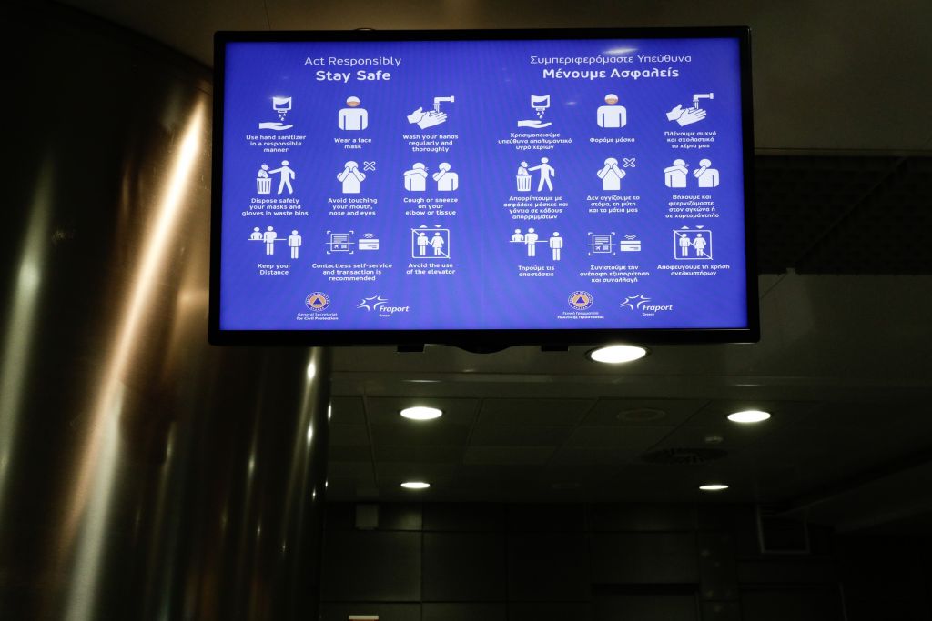 – Η τήρηση των αποστάσεων (1,5 μέτρων) θα πρέπει να εφαρμόζεται σε όλες τις φάσεις των διαδικασιών στο αεροδρόμιο. Ειδικές σημάνσεις στο έδαφος, οπτικές οδηγίες σε οθόνες και banners θα διευκολύνουν στη διατήρηση των αποστάσεων ενώ θα γίνονται επίσης τακτικές ενημερώσεις ηχητικές μέσω οθονών, αναγγελιών και σημάνσεων.