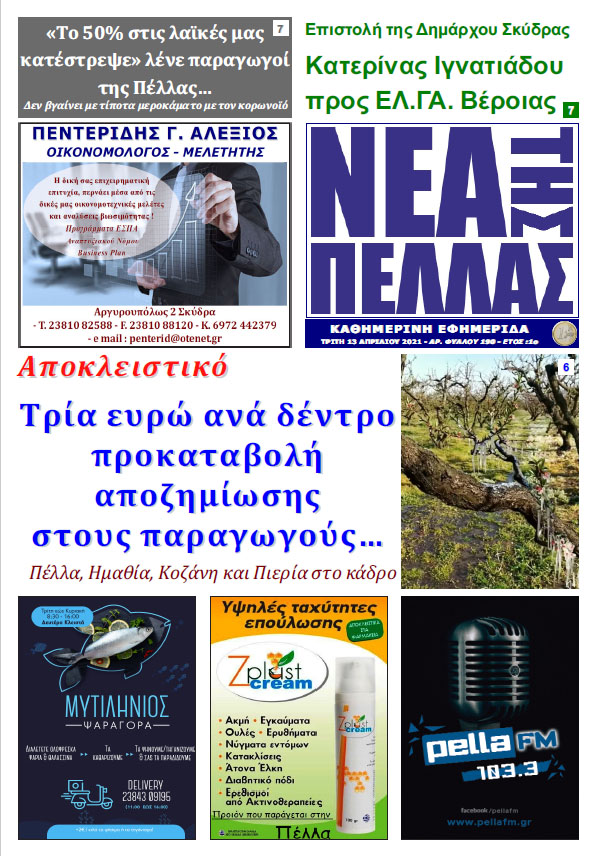 Αγρότης από την περιοχή της Αλμωπίας, αναφέρει στην εφημερίδα μας ότι «Θα πρέπει άμεσα να παρθούν μέτρα για τους παγετούς του Μαρτίου.. Ζητάμε μια καλύτερη διαδικασία υποβολής των αιτήσεων ζημιάς. Επίσης θέλουμε να μπουν όλες οι ποικιλίες πυρηνόκαρπων στις αναγγελίες ζημιών».