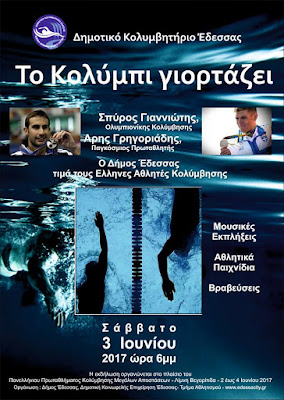 διοργάνωσης ο Δήμος Έδεσσας τιμά τους Έλληνες πρωταθλητές κολύμβησης σε ειδική